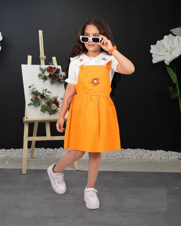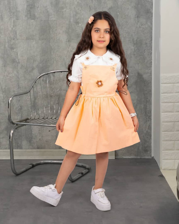 دارای طرح تک گل روی زمینه رنگی شاد و دخترانه است که به لباس جلوهای دلنشین میدهد.